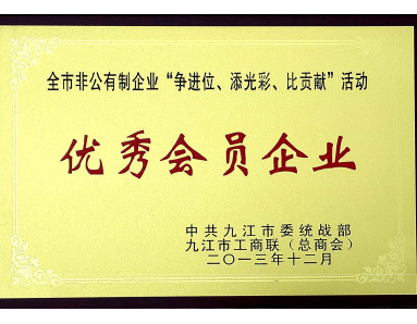 中共九江市委統(tǒng)戰(zhàn)部、九江市工商聯(lián)(總商會(huì))聯(lián)合授予“優(yōu)秀會(huì)員企業(yè)”榮譽(yù)