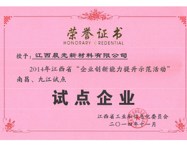 江西省工業(yè)和信息化委員會(huì)授予“創(chuàng)新能力提升示范活動(dòng)試點(diǎn)企業(yè)”榮譽(yù)