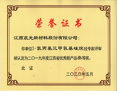 3-氯丙基三甲氧基硅烷產(chǎn)品被江西省工業(yè)信息化廳授予“江西省2019年新產(chǎn)品三等獎(jiǎng)”榮譽(yù)