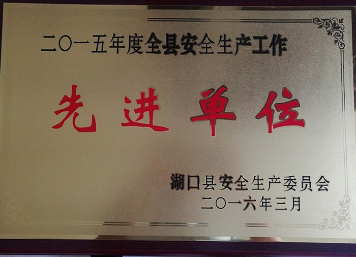 湖口縣安全生產(chǎn)委員會(huì)授予“2015年度全縣安全生產(chǎn)工作先進(jìn)單位”榮譽(yù)